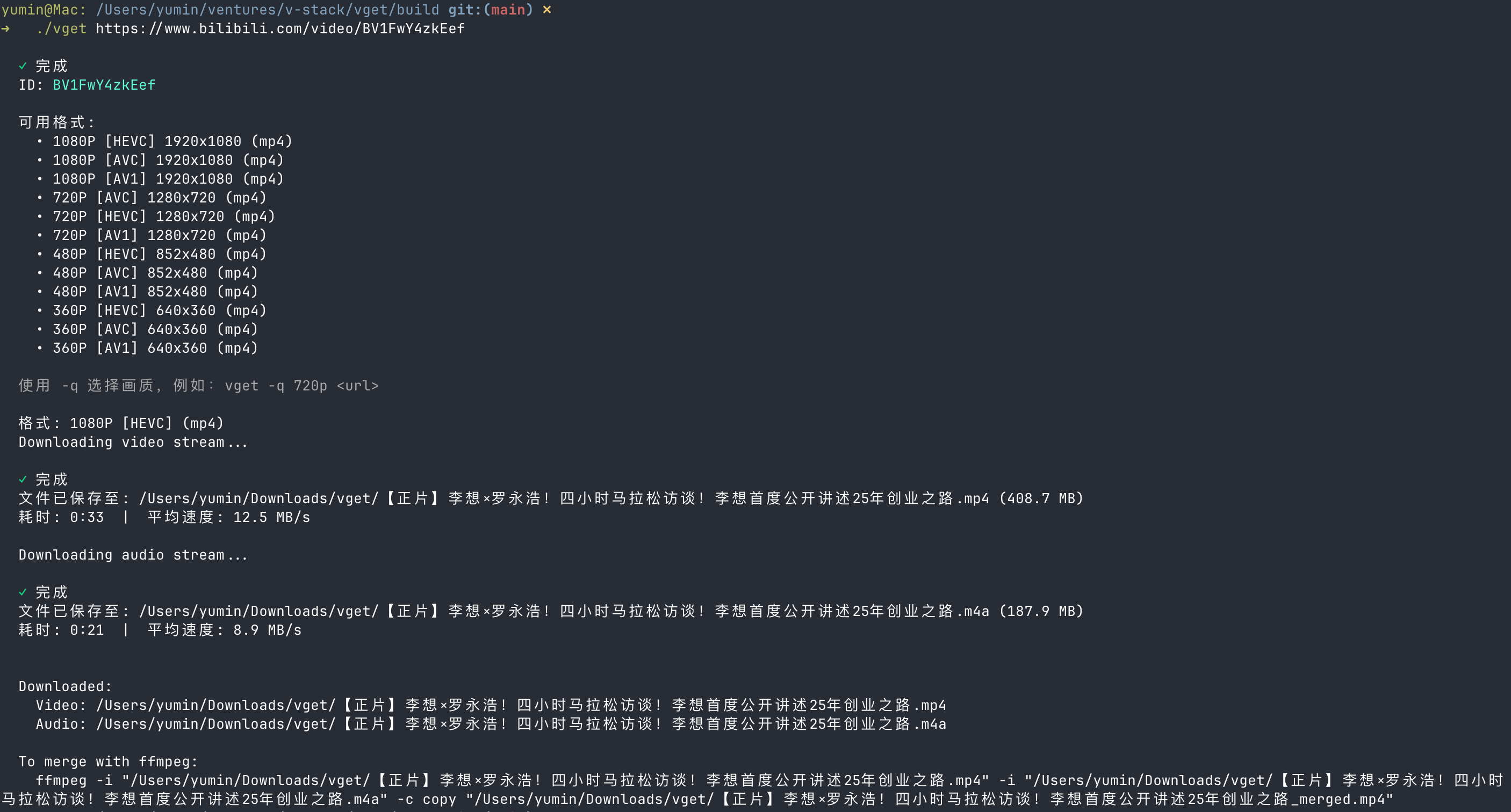 vget 现已原生支持 Bilibili (哔哩哔哩) 视频下载。同时支持 Docker 和 CLI 模式,开箱即用。