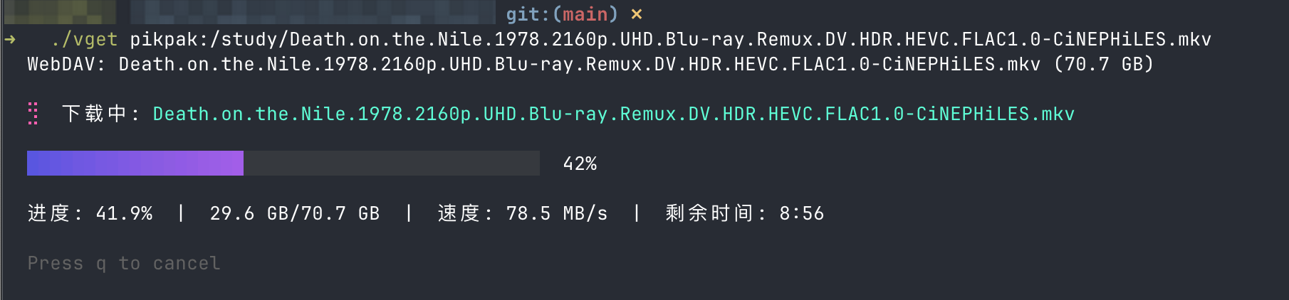 vget [url]下载媒体文件vget ls <remote>:<path>列出远程目录vget init交互式配置向导vget update自动更新vget search --podcast <query>搜索播客vget config show显示配置vget config path显示配置文件路径vget config webdav list列出已配置的 WebDAV 服务器vget config webdav add <name>添加 WebDAV 服务器